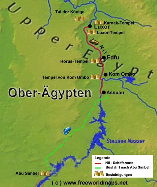 Karte unserer Nil-Kreuzfahrt